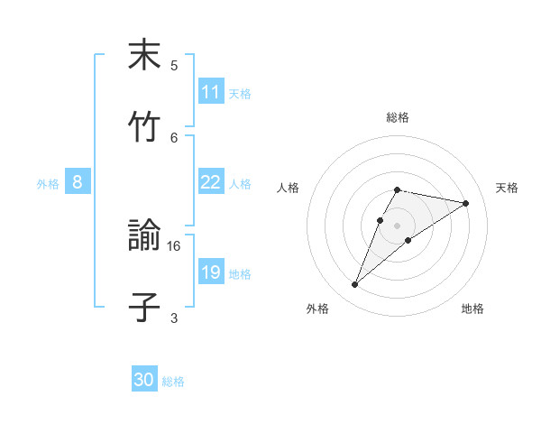 末竹 諭子さんの総格は30画の2点!