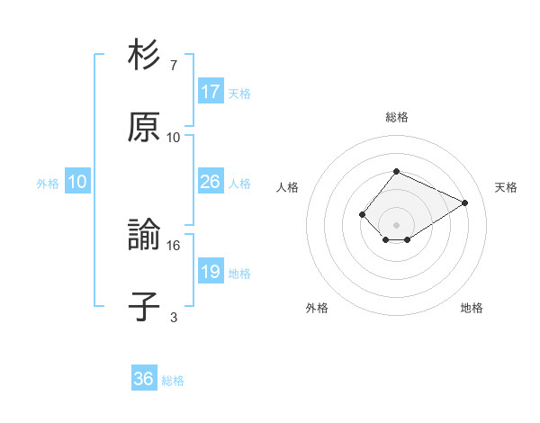 杉原 諭子さんを姓名の画数から五運を鑑定