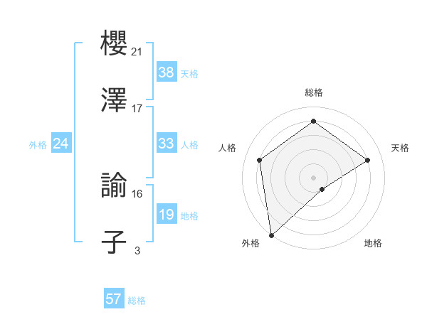 櫻澤 諭子さんを姓名の画数から五運を鑑定