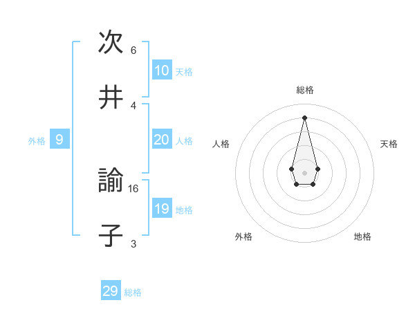 次井 諭子さんの総格は29画の4点!