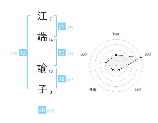江端 諭子さんの天格は21画の5点!
