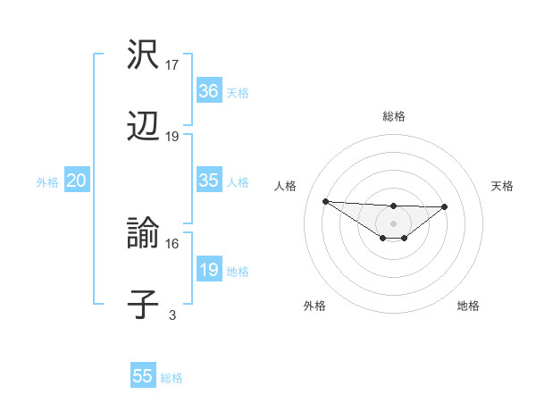 沢辺 諭子さんの天格は36画の3点!