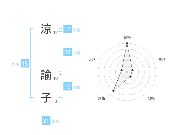 涼 諭子さんの総格は31画の5点!