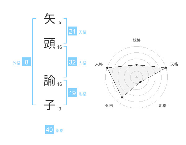 矢頭 諭子さんの天格は21画の5点!