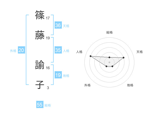 篠藤 諭子さんを姓名の画数から五運を鑑定