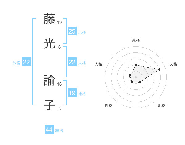藤光 諭子さんの総格は44画の2点!