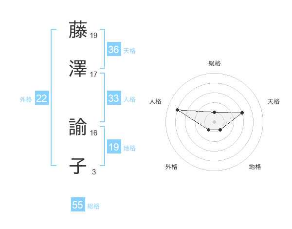 藤澤 諭子さんの総格は55画の1点!