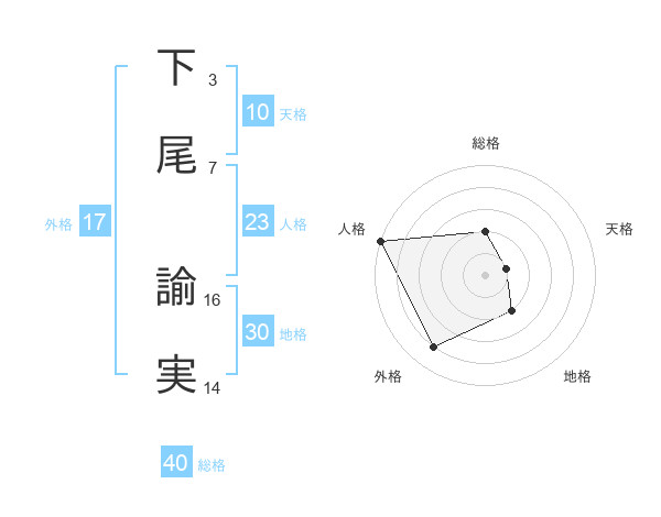 下尾 諭実さんの外格は17画の4点!