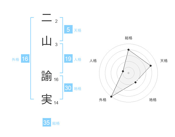 二山 諭実さんの総格は35画の4点!