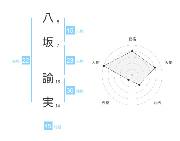 八坂 諭実さんの総格は45画の4点!