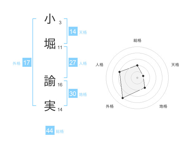 小堀 諭実さんの総格は44画の2点!