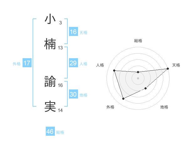 小楠 諭実さんの天格は16画の5点!