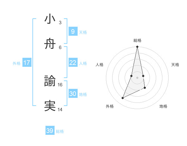 小舟 諭実さんを姓名の画数から五運を鑑定