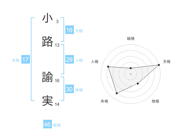 小路 諭実さんの外格は17画の4点!