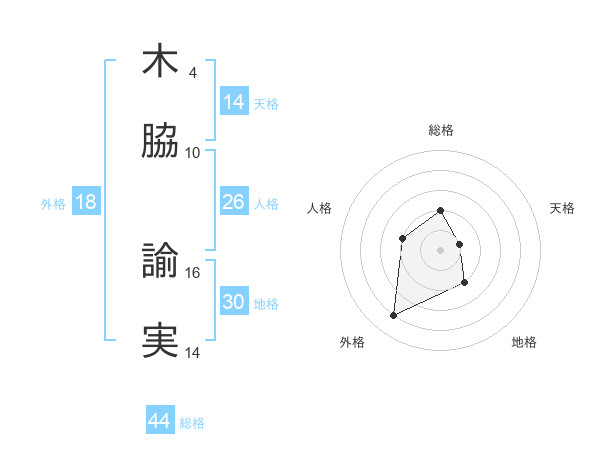 木脇 諭実さんを姓名の画数から五運を鑑定