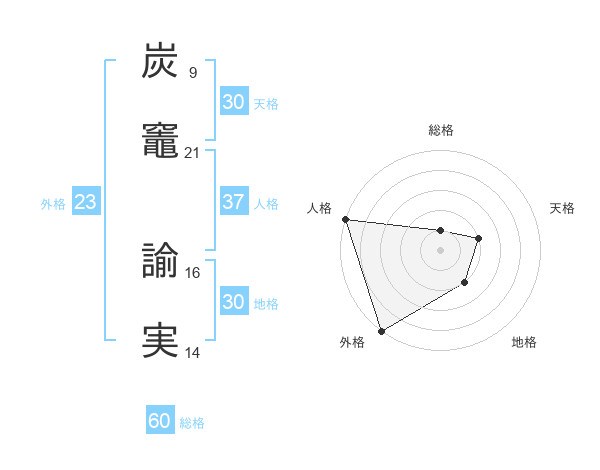 炭竈 諭実さんの総格は60画の1点!