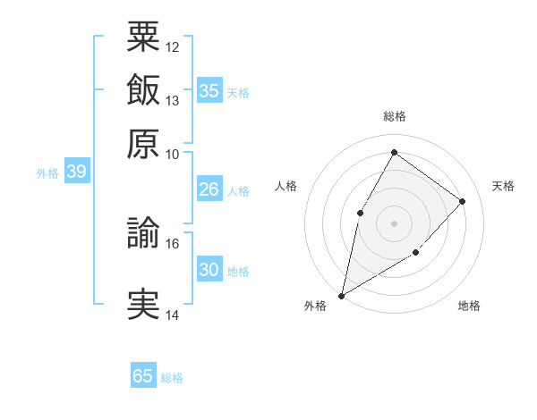 粟飯原 諭実さんの総格は65画の4点!