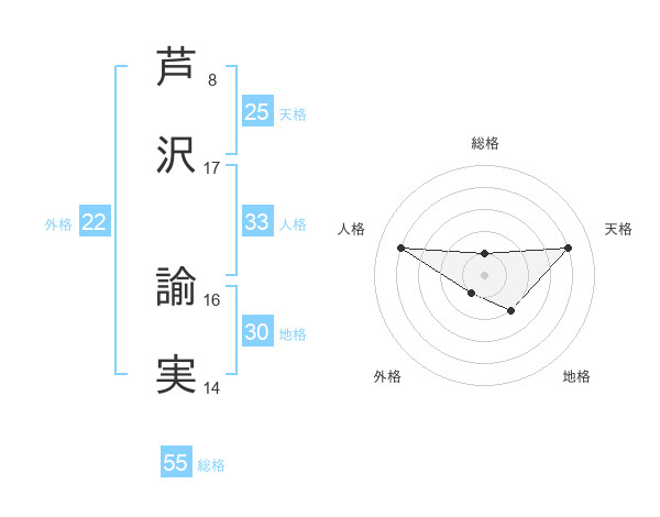 芦沢 諭実さんを姓名の画数から五運を鑑定