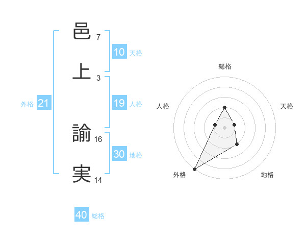 邑上 諭実さんを姓名の画数から五運を鑑定