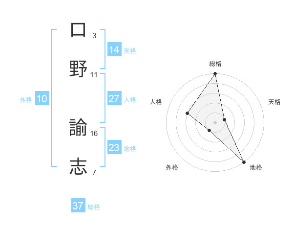 口野 諭志さんの総格は37画の5点!
