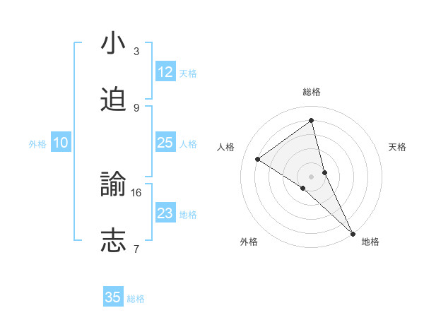 小迫 諭志さんの総格は35画の4点!