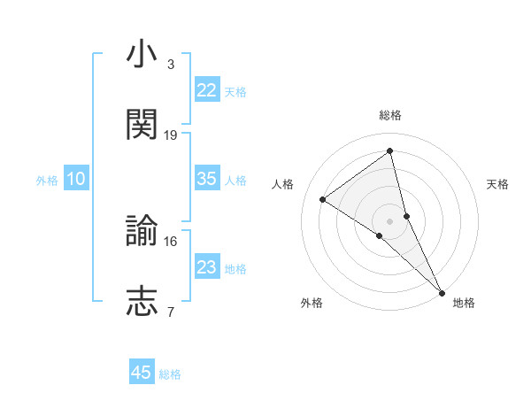 小関 諭志さんの総格は45画の4点!