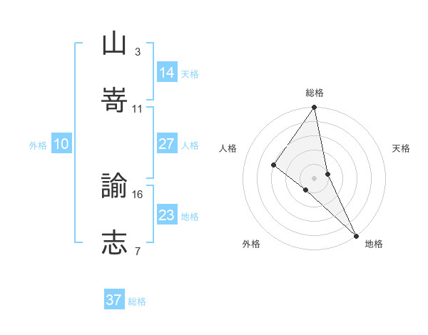 山嵜 諭志さんを姓名の画数から五運を鑑定