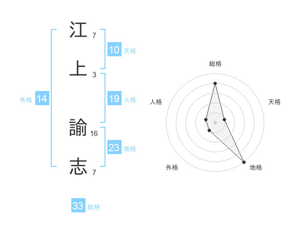 江上 諭志さんの総格は33画の4点!