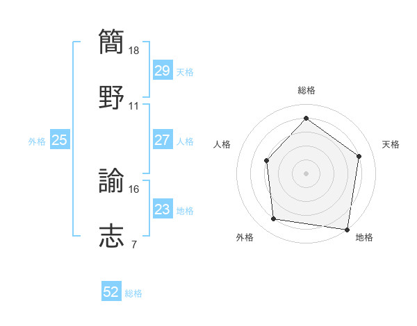 簡野 諭志さんを姓名の画数から五運を鑑定