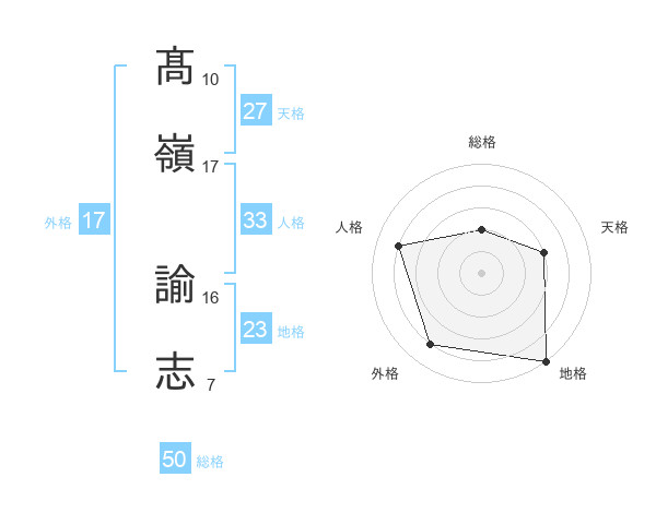 髙嶺 諭志さんを姓名の画数から五運を鑑定