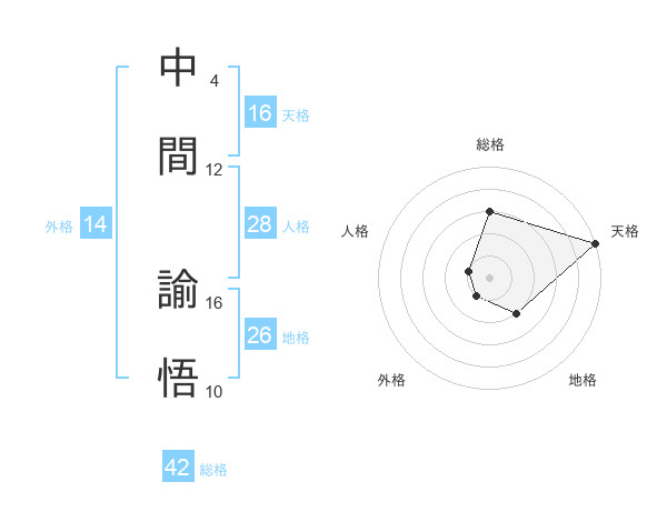 中間 諭悟さんを姓名の画数から五運を鑑定