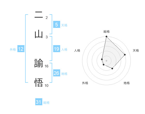 二山 諭悟さんを姓名の画数から五運を鑑定