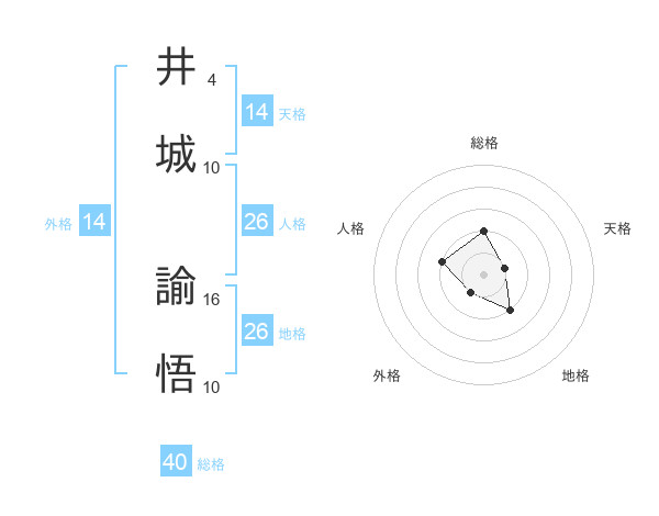 井城 諭悟さんの総格は40画の2点!
