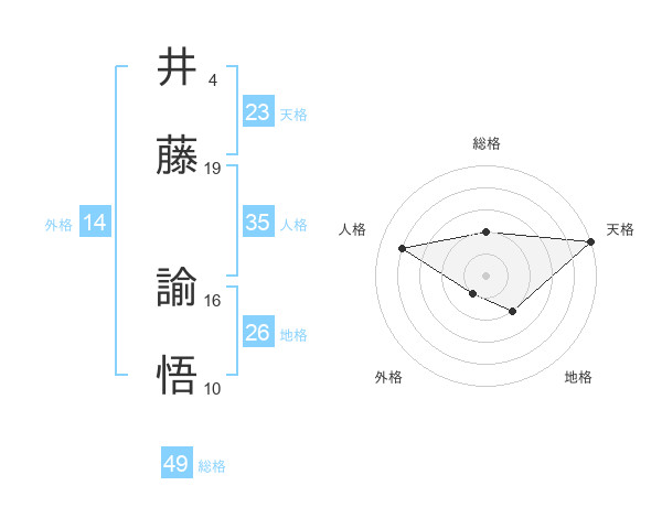 井藤 諭悟さんの総格は49画の2点!