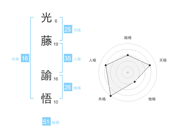 光藤 諭悟さんの総格は51画の3点!