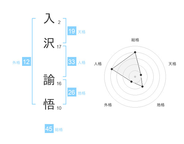 入沢 諭悟さんを姓名の画数から五運を鑑定