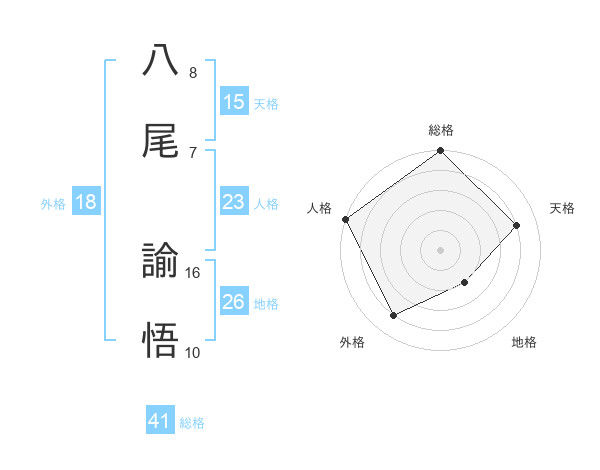 八尾 諭悟さんの総格は41画の5点!