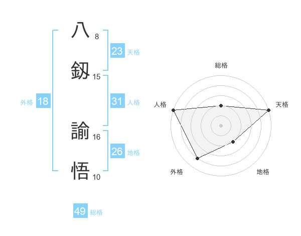 八釼 諭悟さんの総格は49画の2点!