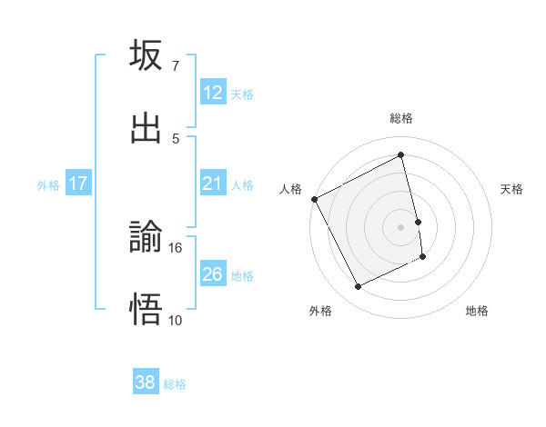 坂出 諭悟さんの総格は38画の4点!