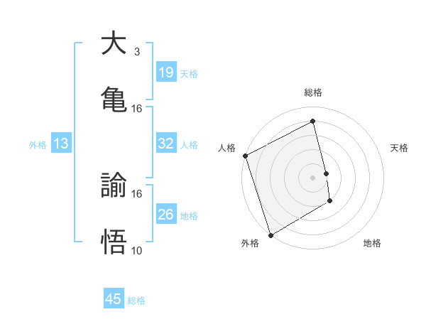 大亀 諭悟さんの総格は45画の4点!