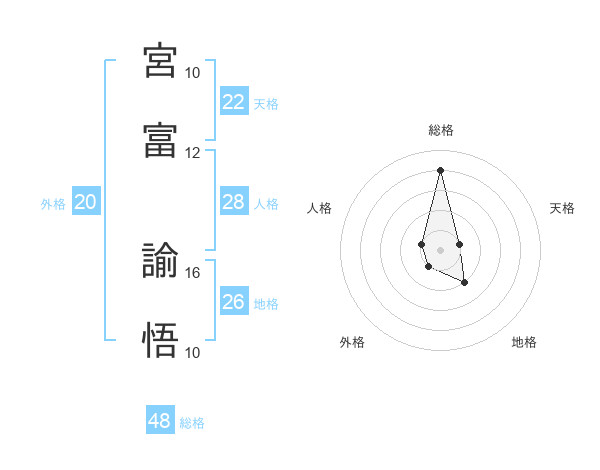 宮富 諭悟さんの総格は48画の4点!