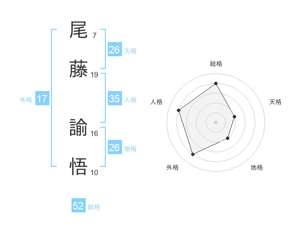 尾藤 諭悟さんを姓名の画数から五運を鑑定