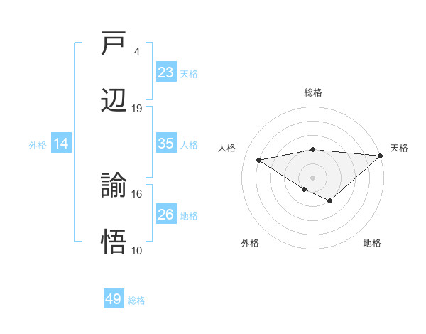 戸辺 諭悟さんの総格は49画の2点!