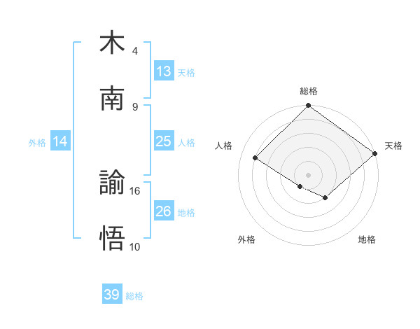 木南 諭悟さんの総格は39画の5点!