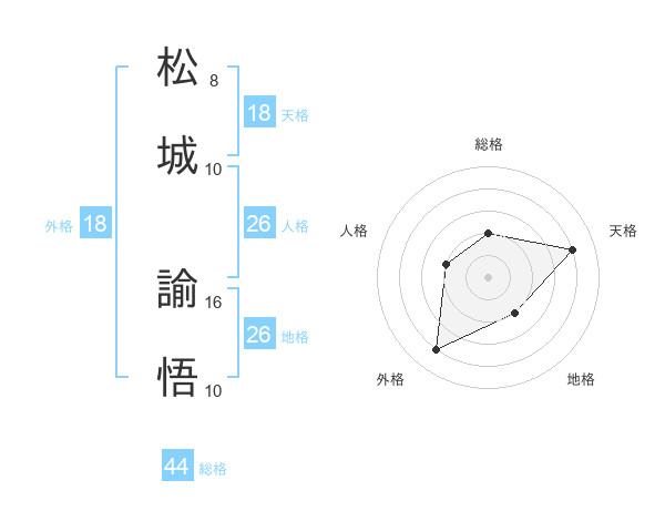 松城 諭悟さんの総格は44画の2点!