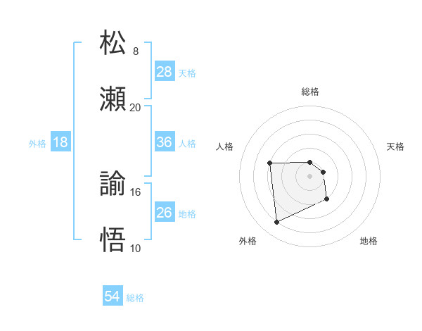 松瀬 諭悟さんの総格は54画の1点!