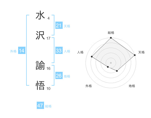 水沢 諭悟さんの総格は47画の5点!