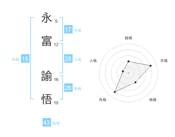 永富 諭悟さんの天格は17画の4点!