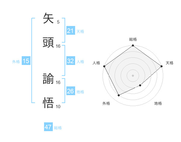 矢頭 諭悟さんの総格は47画の5点!