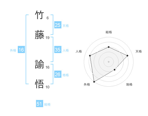 竹藤 諭悟さんの総格は51画の3点!